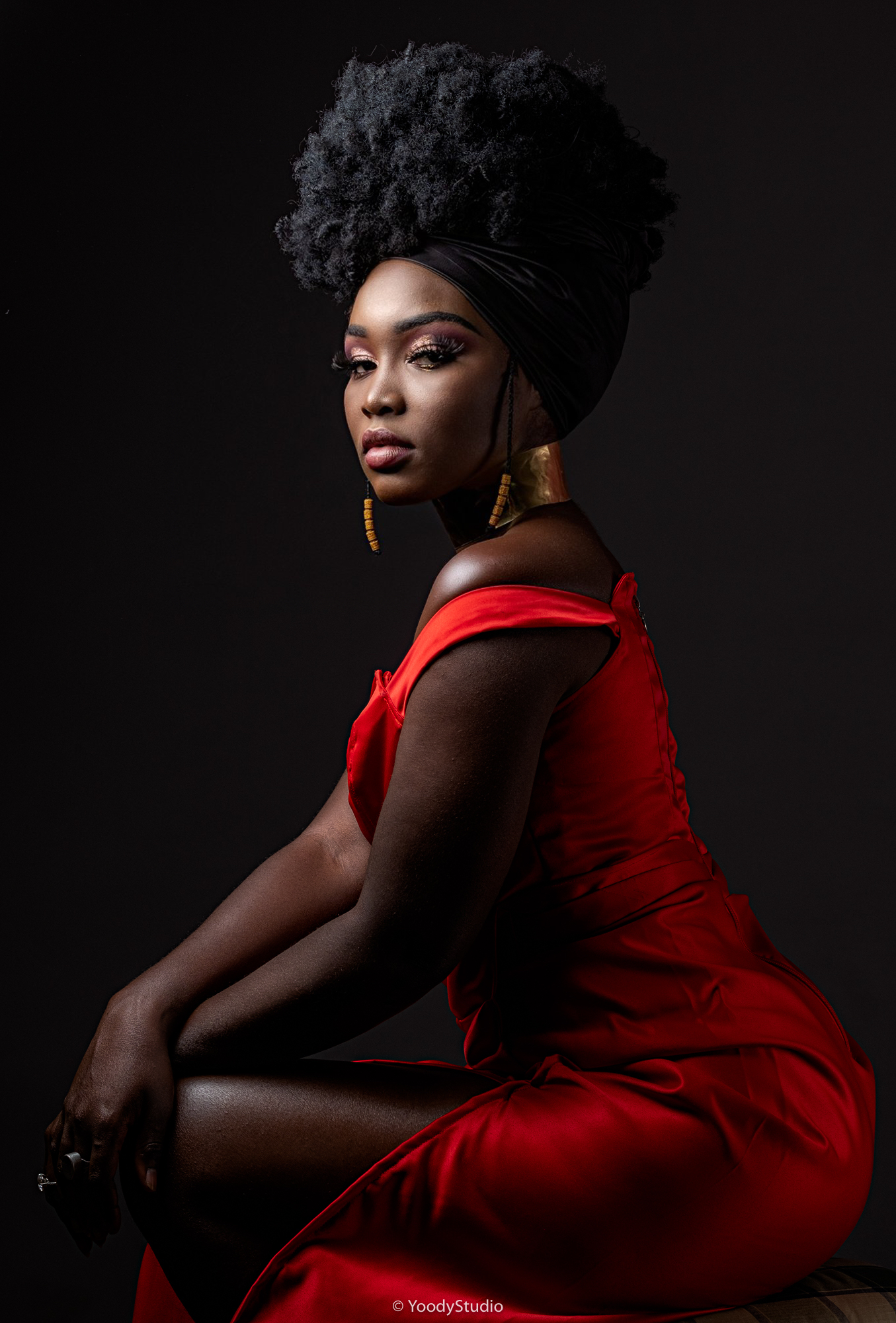 Sa soie rouge intense capte la lumière et sublime chaque mouvement du corps.